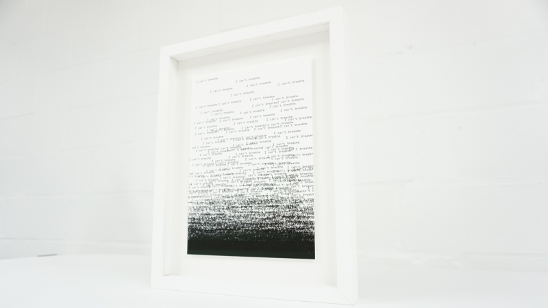 Het kunstwerk is ontstaan door de zin "I can't breathe" 2020 keer te herhalen. De zin “I can’t breathe” is wereldwijd bekend geworden door de moord op George Floyd op 25 mei 2020 in Minneapolis. De 46-jarige Floyd, een Afro-Amerikaanse man, stierf nadat politieagent Derek Chauvin met zijn knie meer dan acht minuten op Floyds nek drukte, terwijl deze geboeid met zijn buik op straat lag. Het gebeuren werd wereldnieuws en leidde tot wereldwijde protesten tegen racisme.